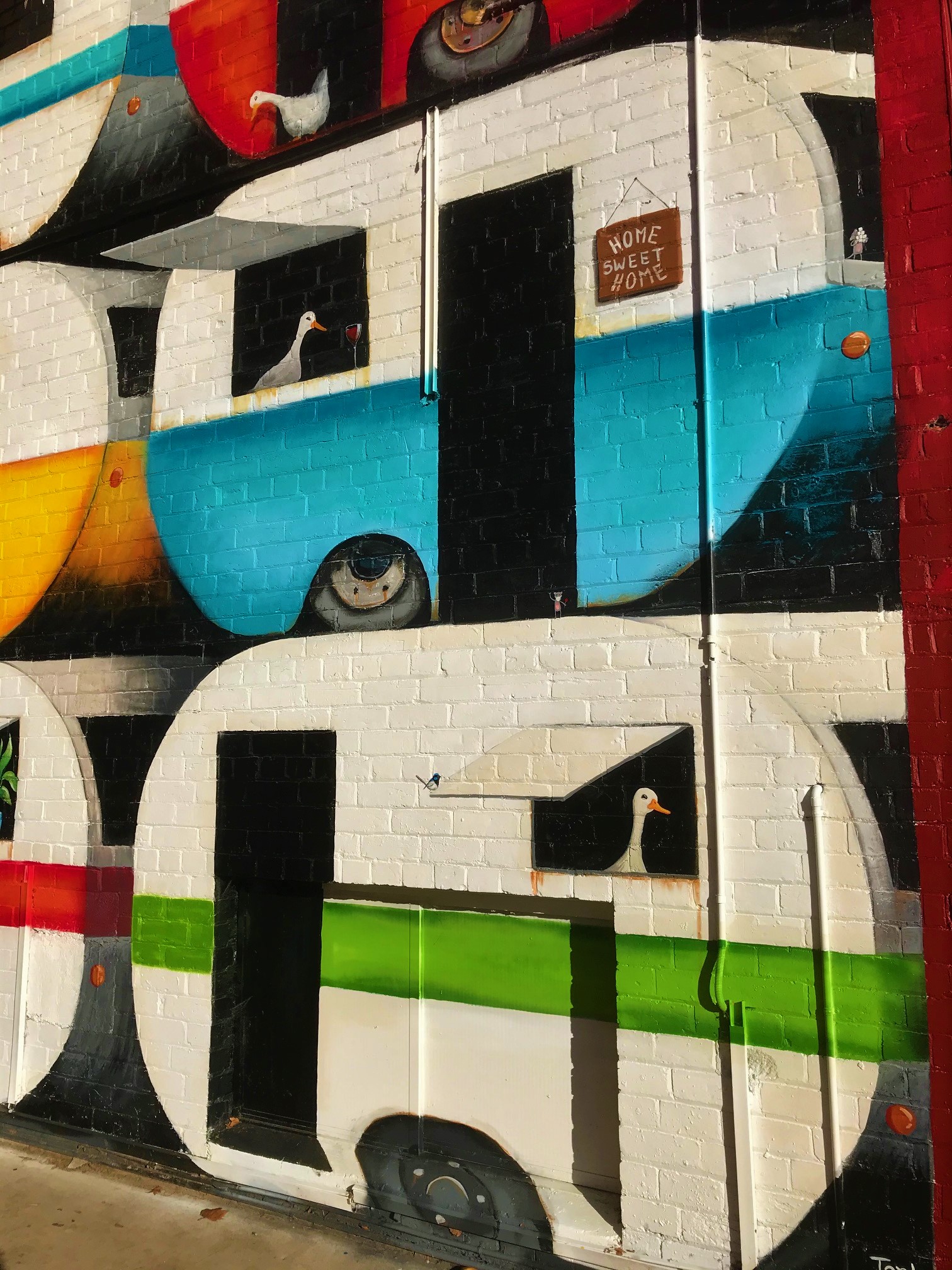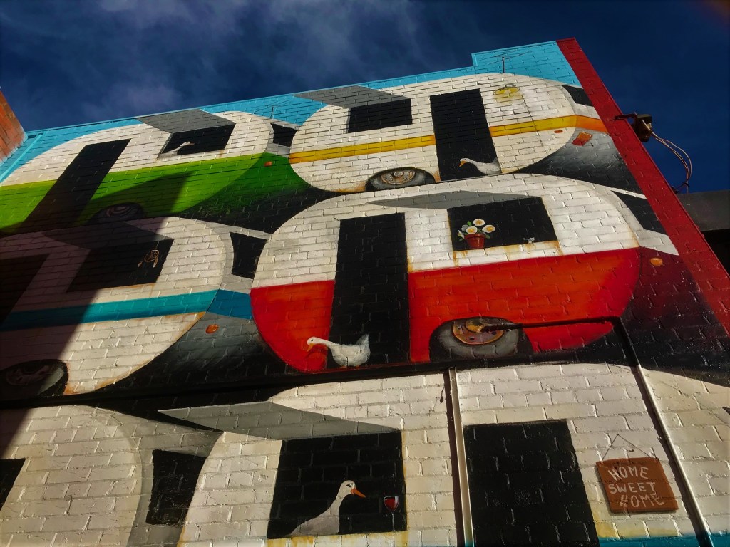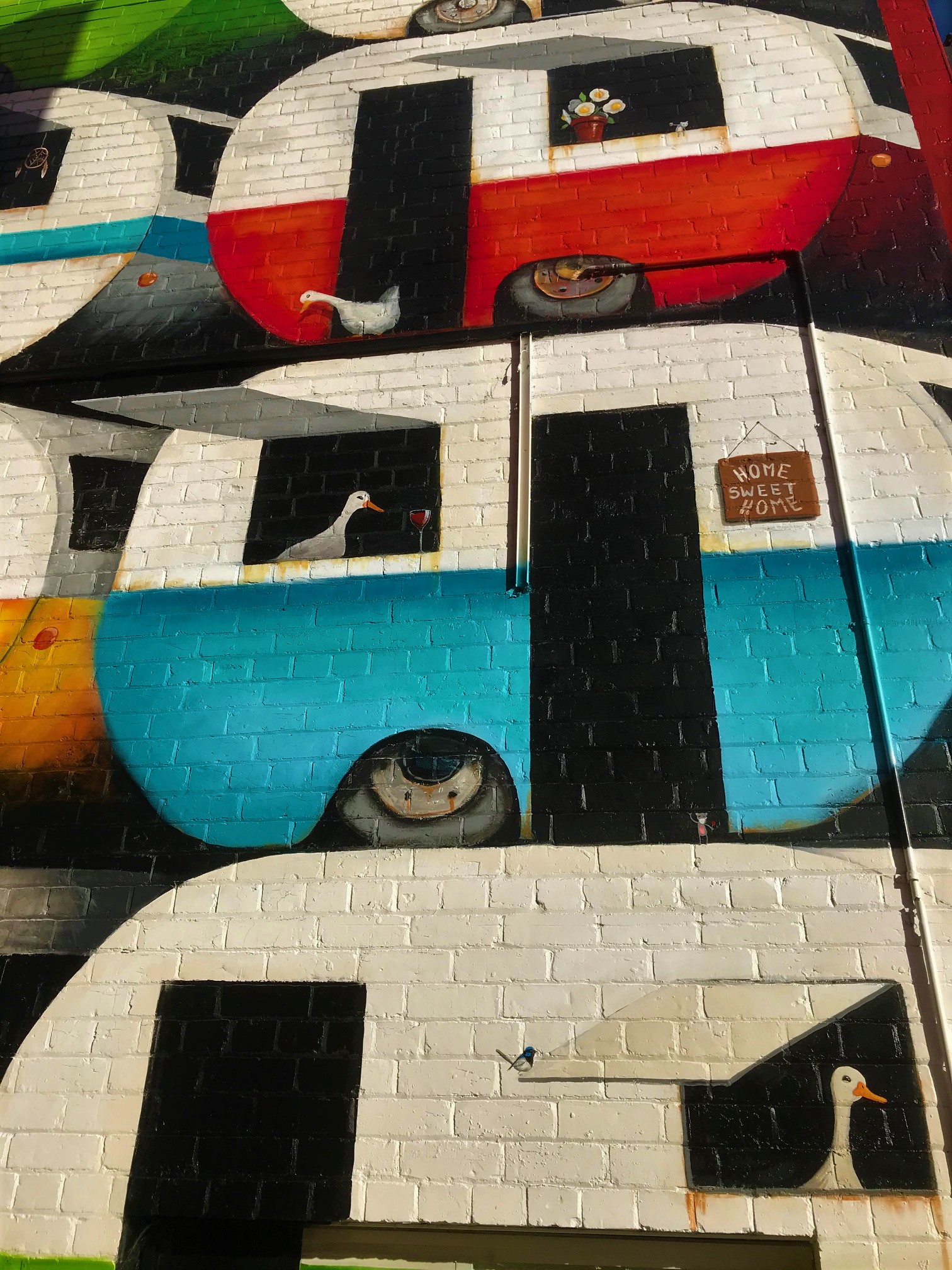 Where: “Stay the Duck at Home” can be found in the alley beside 26 Fryers Street, Shepparton, opposite the Victoria Hotel.