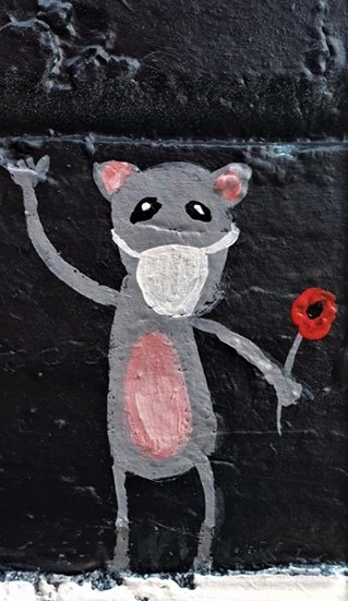 A crowd funded project, TANK has created a colourful piece that depicts ducks that are self isolating at home in their caravans which are stacked one on top of the other. Joining the ducks are several mice who are depicted home schooling, hoarding toilet paper and wearing face masks.